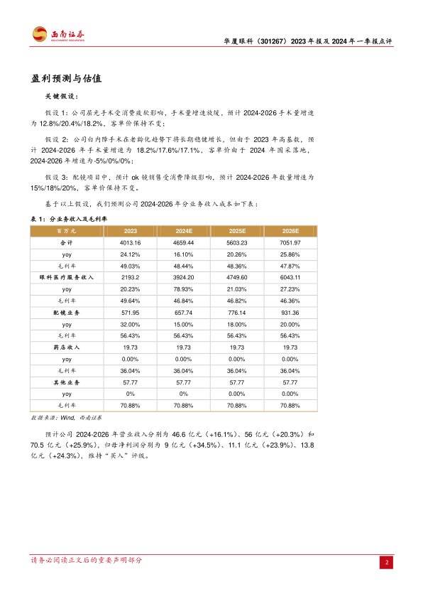 公司积极引进前沿创新成果和高端医疗设备,不断提升其在高端眼科医疗服务市场的竞争力,满足患者个性化、高品质的诊疗需求。尽管短期内因经营规模扩大和品牌推广导致费用投入增加,但基于对未来业务增长的审慎预测,公司盈利能力预计将持续提升,分析师维持“买入”评级,展望积极。