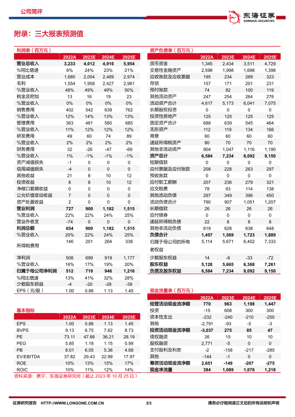 业绩整体符合预期。2023年前三季度,公司营收与归母净利润分别为31.03、5.57亿元,分别同比增长23.0%、40.2%。商誉较年初增加118.5%至1.31亿元,主要是收购合肥视宁所致。Q3单季度,公司营收与归母净利润分别为11.09、2.03亿元,分别同比增长17.4%、25.7%。公司业绩整体符合预期。