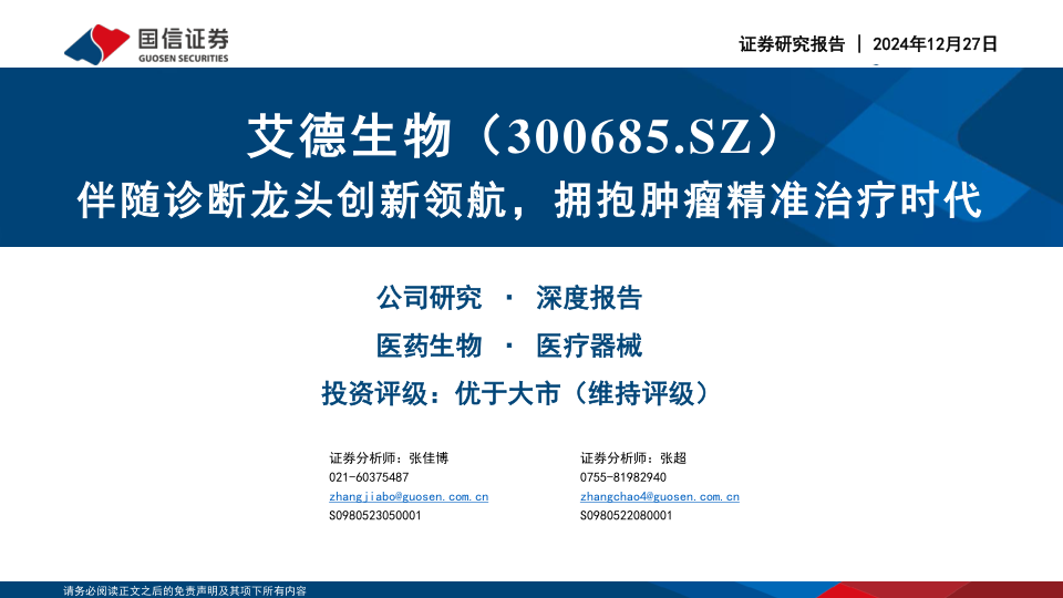 伴随诊断龙头创新领航,拥抱肿瘤精准治疗时代