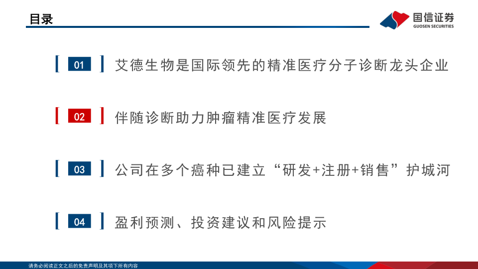 艾德生物是国际领先的肿瘤精准医疗分子诊断龙头企业,专注于肿瘤基因检测和药物伴随诊断。公司通过持续的研发投入和技术创新,构建了全面的伴随诊断产品体系,并在多个癌种领域建立了“研发+注册+销售”的护城河。