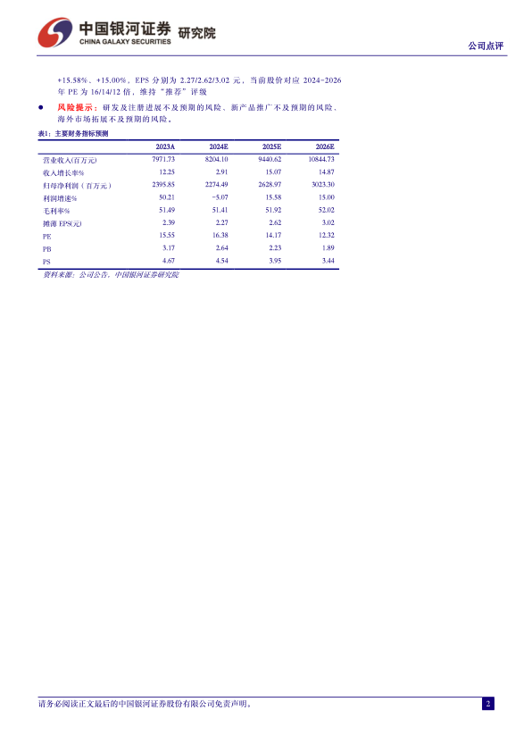 风险提示:研发及注册进展不及预期的风险、新产品推广不及预期的风险、海外市场拓展不及预期的风险。