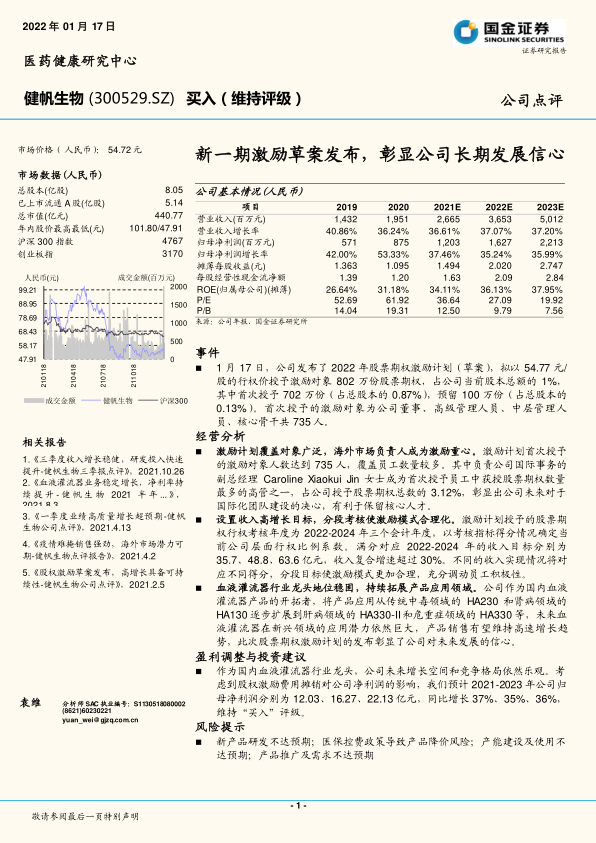 健帆生物此次发布的股票期权激励计划,通过广泛覆盖和明确的业绩目标,有效激发了员工积极性,特别是对国际化人才的重视,预示着公司将加速全球市场布局。公司在血液灌流器领域的龙头地位稳固,产品应用领域持续拓展,新产品迭代升级为未来业绩增长提供了坚实支撑。尽管存在新产品研发、医保控费、产能建设和市场推广等风险,但基于其强劲的盈利增长预期和乐观的行业竞争格局,分析师维持“买入”评级,认为公司具备显著的长期投资价值。