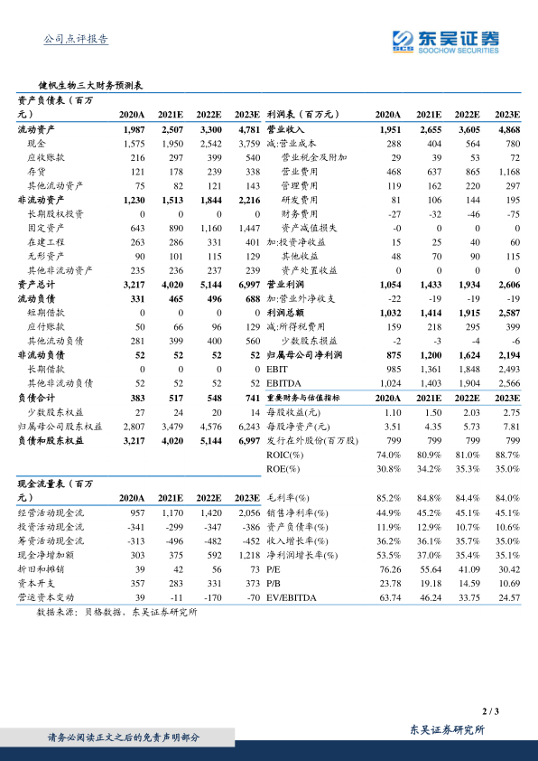 健帆生物2021年一季度业绩表现强劲,营业收入和归母净利润均实现高速增长,分别同比增长52.8%和53.6%。同时,经营性现金流大幅增长56.9%,显示出良好的经营质量。