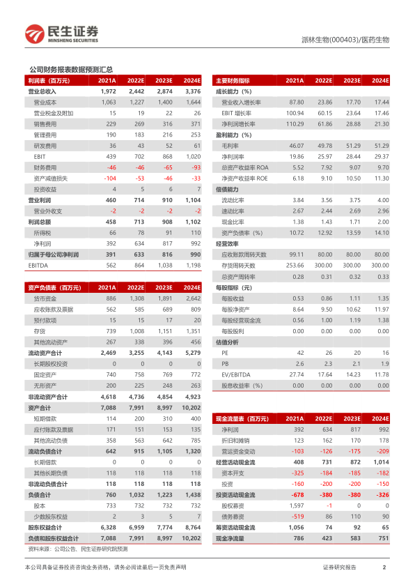 派林生物(000403)