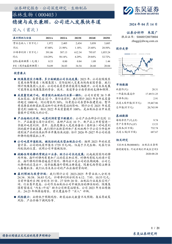 陕煤集团实力雄厚,多方面赋能公司长远发展:2023年,公司控股股东变更为胜帮英豪(陕煤集团),实际控制人变更为陕西省国资委。我们预计陕煤集团入主后,公司的采浆资源将获得大幅提升,公司未来发展可获得来自陕煤集团的资金、技术、渠道等全方面资源的支持和保障。
