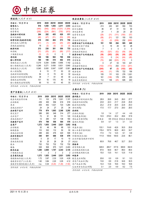 派林生物在2021年第三季度展现出强劲的业绩增长势头,营业收入和归母净利润同比大幅提升,主要得益于销售增长和派斯菲科的并表效应。同时,公司内部管理水平持续优化,销售费用率和财务费用率显著下降,体现了公司在提升运营效率方面的成效。