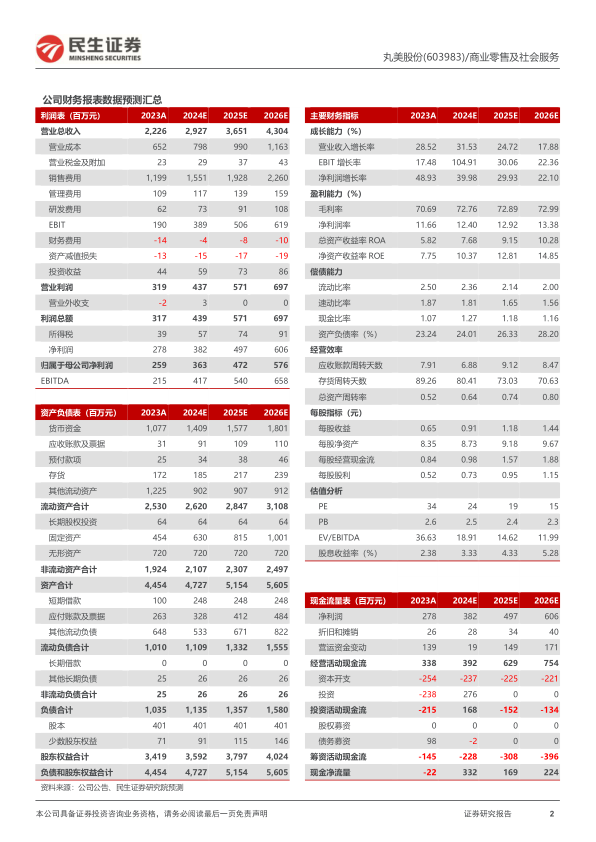 投资建议:公司是国内眼部护理及抗衰领域龙头企业,主品牌丸美积极调整渠道与产品结构恢复稳健增长,新锐彩妆品牌恋火差异化深耕底妆赛道打造第二成长曲线,看好公司未来品牌力、产品力提升驱动收入增长,我们预计公司2024-2026年归母净利润分别为3.63、4.72、5.76亿元,现价(2024/8/23)对应PE分别为24X、19X、15X,维持“推荐”评级。