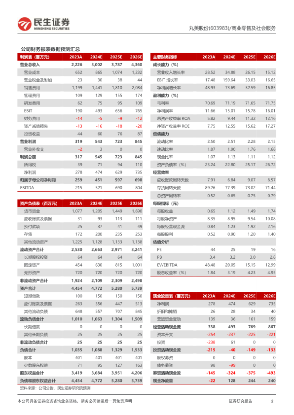 投资建议:公司是国内眼部护理及抗衰领域龙头企业,主品牌丸美积极调整渠道与产品结构恢复稳健增长,新锐彩妆品牌恋火差异化深耕底妆赛道打造第二成长曲线,看好公司未来品牌力、产品力提升驱动收入增长,我们预计公司2024-2026年归母净利润分别为4.51、5.97、6.98亿元,现价(2024/4/26)对应PE分别为25X、19X、16X,维持“推荐”评级。