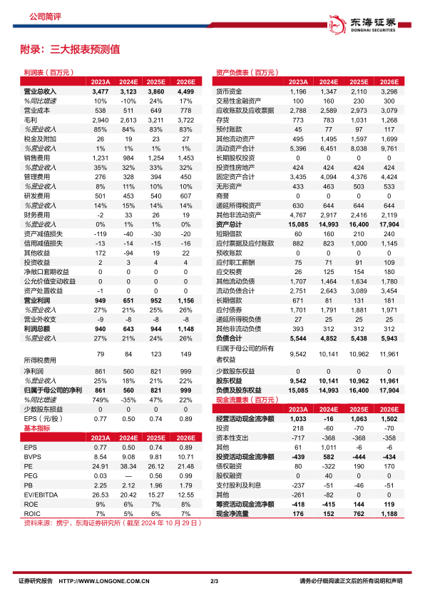 研发管线进展顺利。2024年前三季度公司研发费用达3.12亿元,占营收比重为15.45%,公司多项在研产品取得积极进展:1)Sabin株脊髓灰质炎灭活疫苗(Vero细胞)上市申请获受理;2)吸附无细胞百白破(组分)联合疫苗已完成I期临床试验,III期临床准备中;3)吸附破伤风疫苗和四价流感病毒裂解疫苗处于Ⅰ、Ⅲ期临床试验阶段;4)口服五价重配轮状病毒减毒活疫苗(Vero细胞)开启Ⅱ期临床试验;5)20价肺炎球菌多糖结合疫苗四价流感病毒裂解疫苗(MDCK细胞)获批临床。此外,公司还布局研制了四价肠道病毒灭活疫苗(Vero细胞)、带状疱疹疫苗、呼吸道合胞病毒疫苗(RSV)等疫苗的研发,多元化的研发管线,为公司持续发展提供重要的动力源泉。