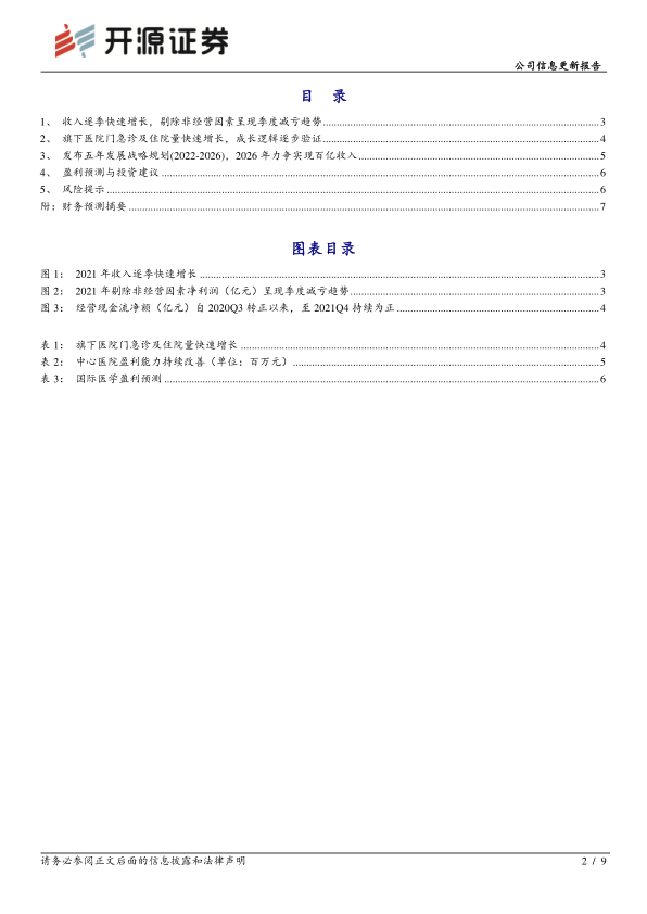 报告特别指出,若剔除公允价值变动损益以及股权激励费用这两项非经营性因素的影响,2021年第一季度至第三季度的净利润相较于2020年同期呈现出减亏趋势,这表明公司核心医疗业务的运营效率和盈利能力正在逐步改善。然而,2021年第四季度亏损有所加大,分析师预计这与高新医院新增医疗服务大楼开诊后,折旧摊销费用显著增加有关。新医疗设施的投入使用虽然短期内会增加固定成本,但长期来看将提升医疗服务能力和床位供给,为未来的营收增长奠定基础。