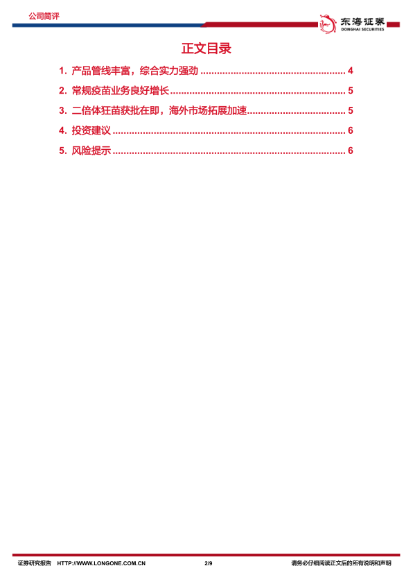 风险提示:疫苗行业政策变动风险;疫苗研发及上市进度不及预期风险;市场竞争加剧风险等。