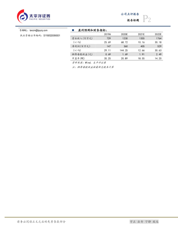 盈利预测与投资评级:基于公司核心业务板块分析,我们预计2020-2022营业收入分别为12.30亿/13.55亿/17.64亿,同比增速分别为69%/10%/30%;归母净利润分别为3.60亿/4.05亿/5.29亿,分别增长144%/13%/31%;EPS分别为1.69/1.91/2.49,按照2020年12月28日收盘价对应2020年21倍PE。维持“买入”评级。