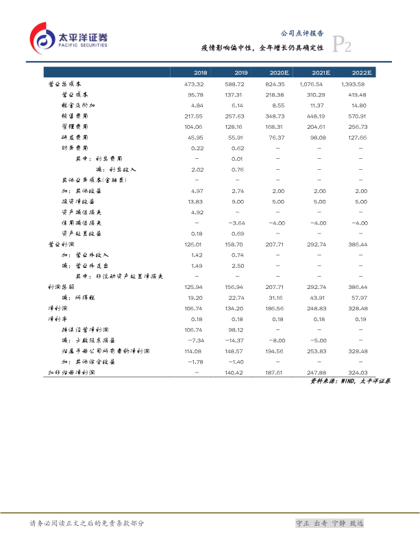 报告预计,公司收入结构在2020年将发生较大调整。在盈利预测方面: