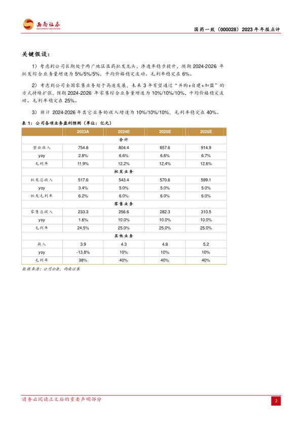 本报告对国药一致(000028)2023年年报进行了深度分析,核心观点如下: