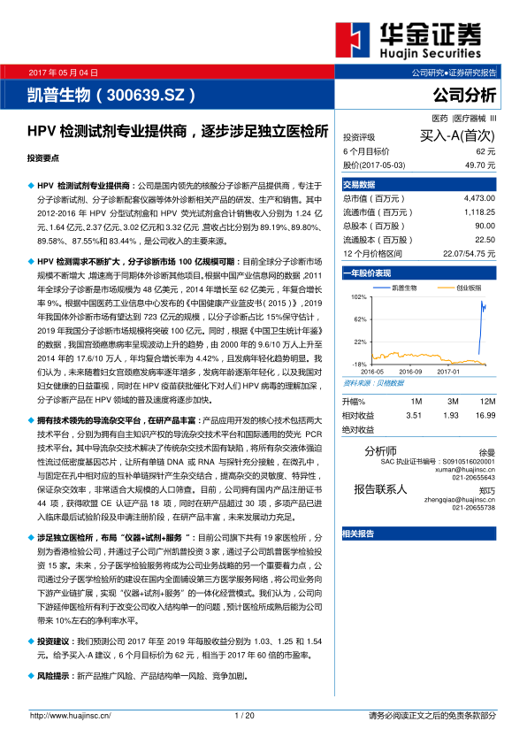 综合来看,未来随着妇女宫颈癌发病率的逐年增多、发病年龄的逐渐年轻化,以及我国对妇女健康的日益重视,同时在HPV疫苗获批的催化下,人们对HPV病毒的理解将进一步加深,分子诊断产品在HPV领域的普及速度将逐步加快,为凯普生物等相关企业带来持续的增长动力。