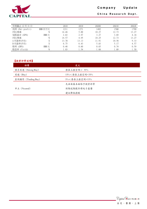 盈利预计及投资建议:我们预计公司2021/2022年分别实现净利润15.8亿元、17.9亿元,分别YOY+12.7%、+13.2%,EPS为3.7元、4.2元,A股PE分别为11倍和9倍,B股PE分别为5.2倍和4.6倍。公司主业增长良好,并且公司作为全国的零售龙头和两广区域的分销龙头,在未来行业集中度提升以及医药分家的行业趋势下将会持续受益,医药零售业务持续扩张,净利率也有较大改善空间,我们看好公司的长远发展,目前公司A/B股估值均处于历史较低水平,均维持“买进”的投资建议。