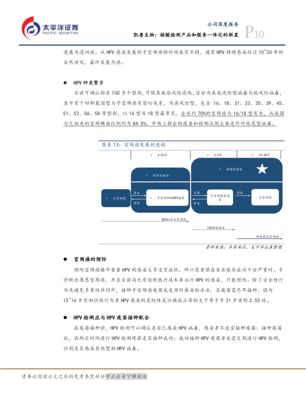 - 公司概况与核心业务: 凯普生物成立于2003年,是国内核酸分子诊断产品研发、生产与销售的领先企业,同时提供第三方医学检验和医疗健康管理服务。公司在宫颈癌HPV检测领域占据龙头地位,2006年打破国外产品垄断,2018年HPV试剂销售量达466.42万人份,约占全国市场的三分之一。