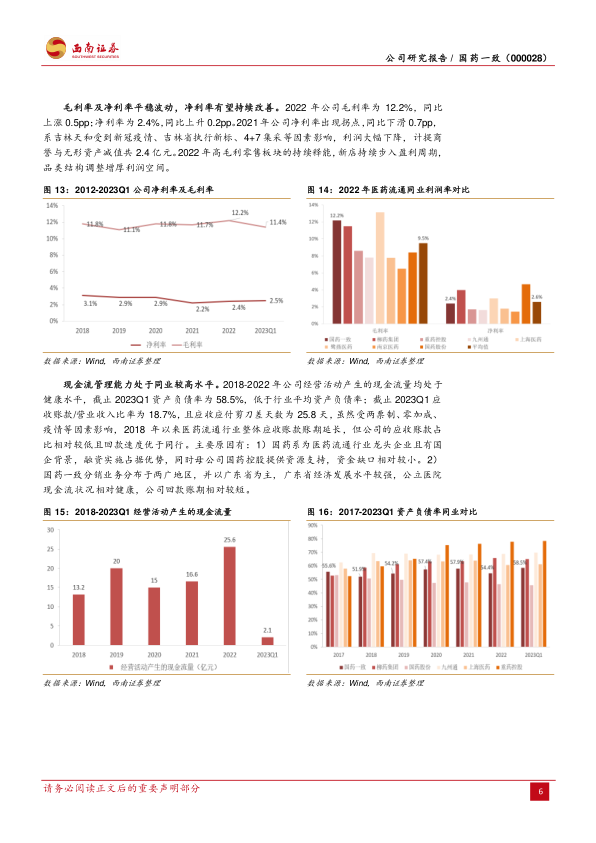 国企改革深化,国药系资源持续赋能,净利率有望持续提升。国资委提出“一利五率”经营指标和“一增一稳四提升”总体目标,促进整体经营质量提升,未来有望推进中长期激励,激活企业活力。国药系资源支持下,公司的批零一体化业务具有显著资源优势、采购运营成本优势等。2022年毛利率实现12.2%,远高于行业平均的9.5%。资金与回款指标方面优于同业均值,截至2023Q1,资产负债率为58.5%,应收账款/营业收入比率为18.7%,应收应付剪刀差天数为25.8天,财务费率为0.2%。