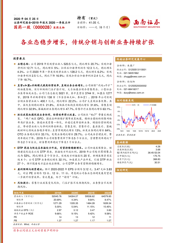 本报告对国药一致(000028)的2019年报及2020年一季报进行了深入分析,核心观点如下: