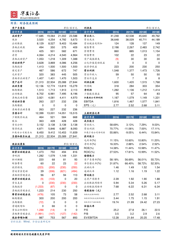 | 财务指标 (百万元) | 2016 | 2017E | 2018E | 2019E |