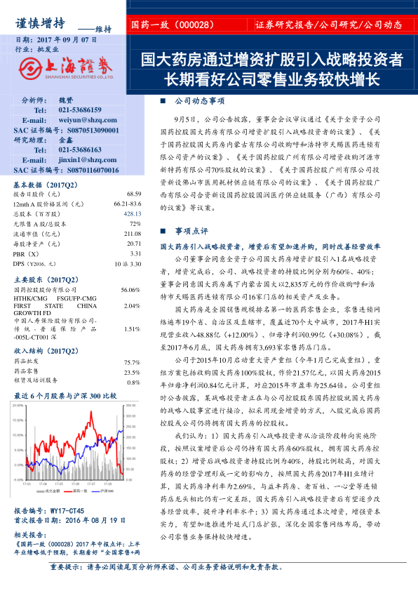 公司动态:国大药房通过增资扩股引入战略投资者 长期看好公司零售业务较快增长