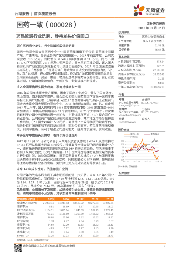 国药一致作为中国医药集团旗下子公司,通过2016年重大资产重组,成功转型并确立了“全国零售+两广分销+工业投资”的战略定位。在“两票制”、“医药分离”等医改政策推动行业洗牌的背景下,公司凭借其在广东、广西两地的医药商业龙头地位、完善的分销网络、全国领先的国大药房零售平台以及与全球零售巨头沃博联的战略合作,展现出显著的竞争优势和长期增长潜力。