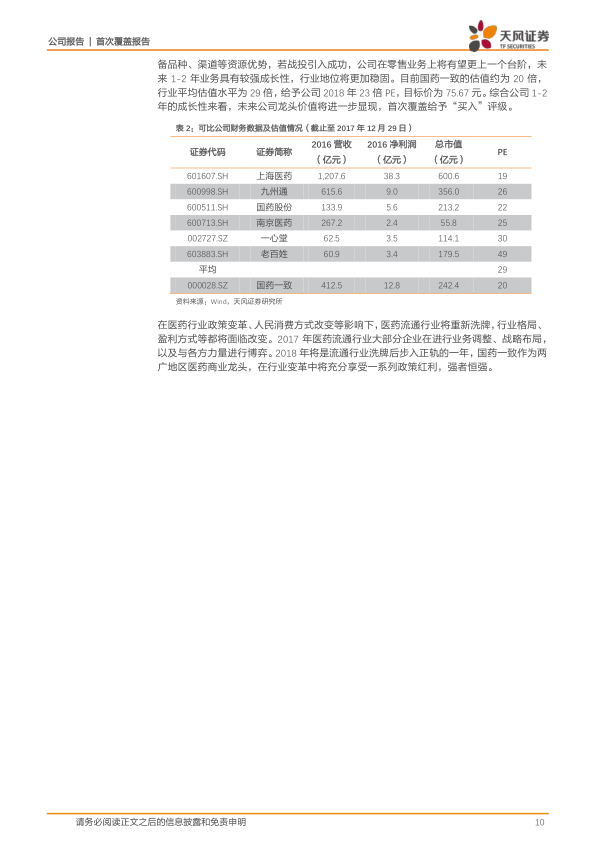 - 国药一致作为全国大型医药央企中国医药集团旗下子公司,在2016年完成重大资产重组,置出医药工业部分,置入国大药房、佛山南海、南方医贸等资产,明确了“全国零售+两广分销+工业投资”的战略定位。
