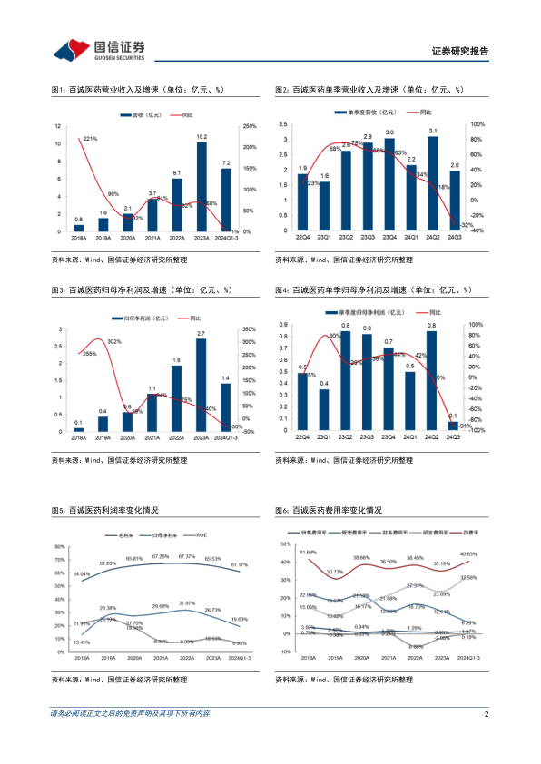 百诚医药2024年前三季度实现营业收入7.21亿元,同比增长1.07%;归母净利润1.42亿元,同比下降29.69%;扣非归母净利润1.25亿元,同比下降37.74%。其中,第三季度单季营收1.96亿元,同比下降32.26%;归母净利润0.07亿元,同比大幅下降90.92%;扣非归母净利润0.02亿元,同比下降97.79%。业绩下滑主要系仿制药CRO行业竞争加剧、下游药品销售疲软及MAH监管趋严所致。利润端下滑幅度大于收入端,主要由于公司加大创新药和自研仿制药研发投入,以及商业化产线转固导致折旧摊销增多。