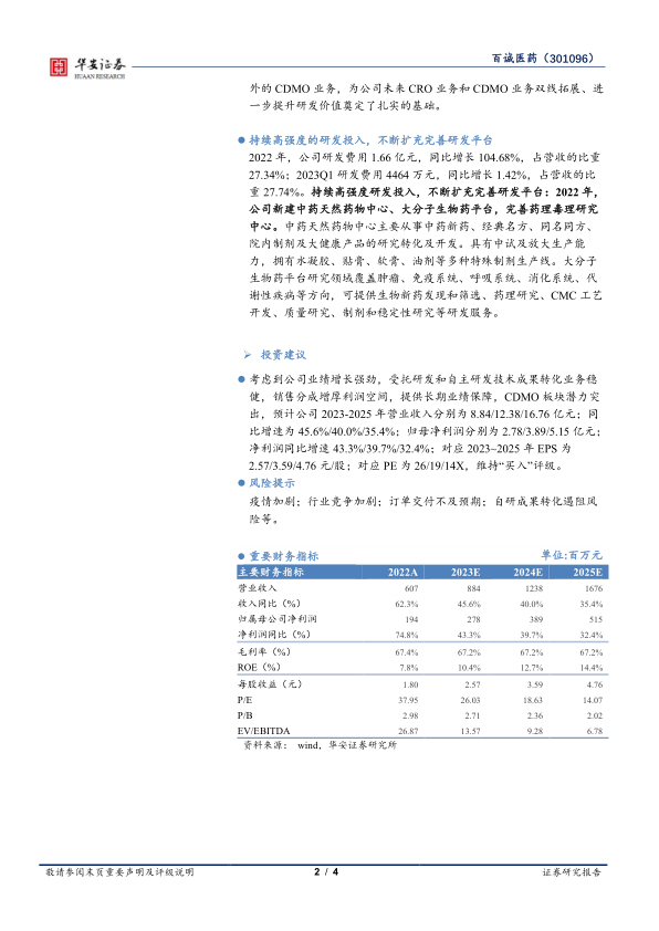 百诚医药一季度业绩表现亮眼,营收和净利润均实现显著增长。公司通过强化“技术转化+受托开发+权益分成”的经营模式,有效提升了盈利能力。订单充足,在手订单持续增长,为未来业绩提供了坚实保障。同时,公司不断推进自研成果转化,CDMO板块稳步增长,产能逐步释放,为公司带来新的增长动力。持续高强度的研发投入,不断扩充完善研发平台,为公司的长期发展奠定了基础。综合来看,百诚医药具备良好的成长性和投资价值,维持“买入”评级。