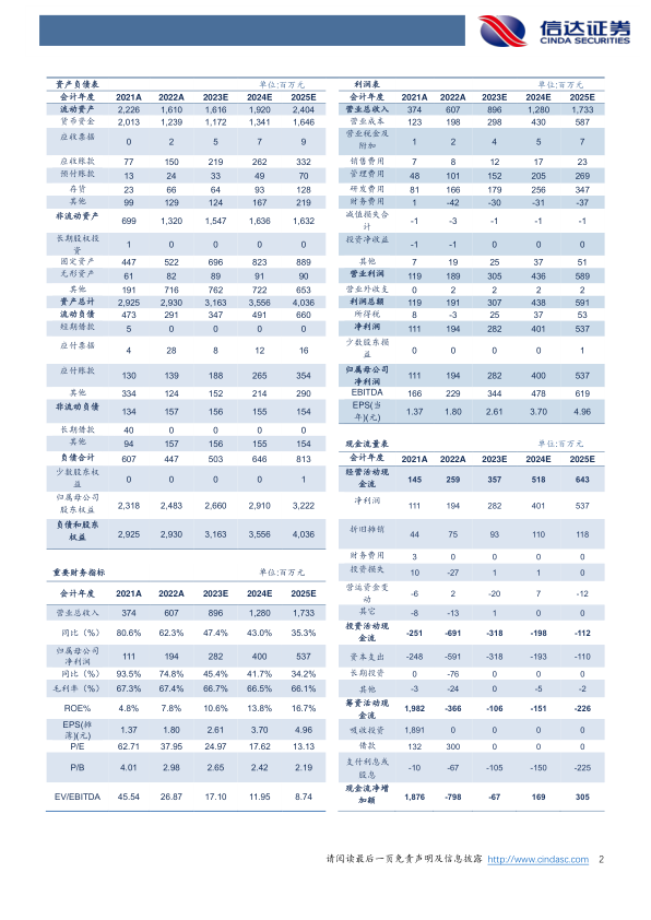订单驱动未来增长,人才打造核心竞争力。2022年,公司新增订单为10.07亿元(含税、同比+24.69%),在手订单为13.34亿元(不含税、同比+49.42%),高速增长的订单源自公司强劲的研发能力和一体化能力;2022年,公司共有1321名员工,同比增加556名,深厚的人才储备打造了公司的核心竞争力。