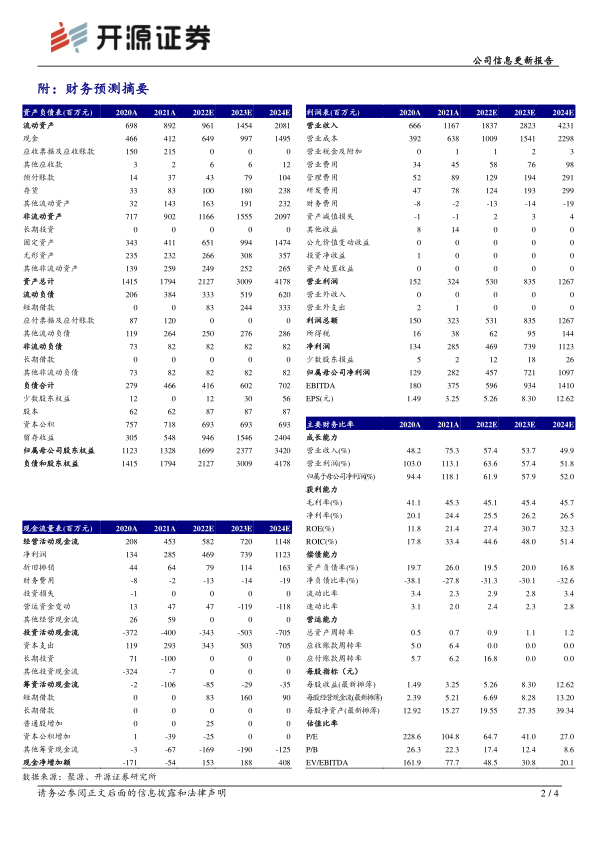 8 月 22 日, 公司发布 2022 年半年度报告。 2022H1 实现营收 7.43 亿元,同比增长 53.16%;归母净利润 1.63 亿元,同比增长 43.77%, 若扣除 2022H1 受疫情影响而增加的费用, 归母净利润同比增长 57.74%;扣非后归母净利润 1.54 亿元,同比增长 40.39%; 2022Q2 营收 3.87 亿元,同比增长 43.12%; 归母净利润 0.85亿元,同比增长 25.63%; 扣非后归母净利润 0.79 亿元,同比增长 19.74%; 整体上,在疫情影响下,公司经营业绩依然保持稳健增长。考虑疫情影响,我们略下调对公司的盈利预测,预计 2022-2024 公司的归母净利润为 4.57/7.21/10.97 亿元(原预计 4.68/7.30/11.02 亿元), EPS 为 5.26/8.30/12.62元,当前股价对应 PE 为 64.7/41.0/27.0 倍, 鉴于公司后续业绩增长确定性强, 维持“买入”评级。