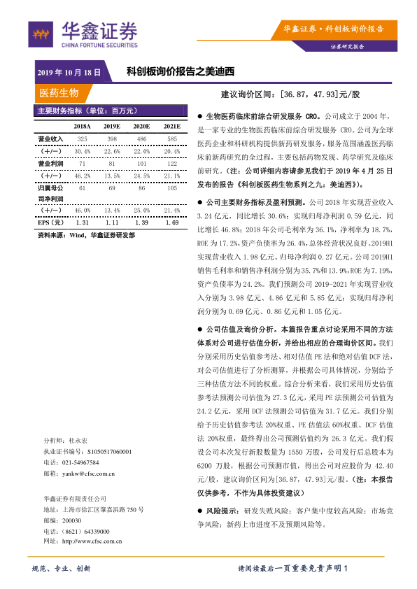 科创板询价报告之美迪西