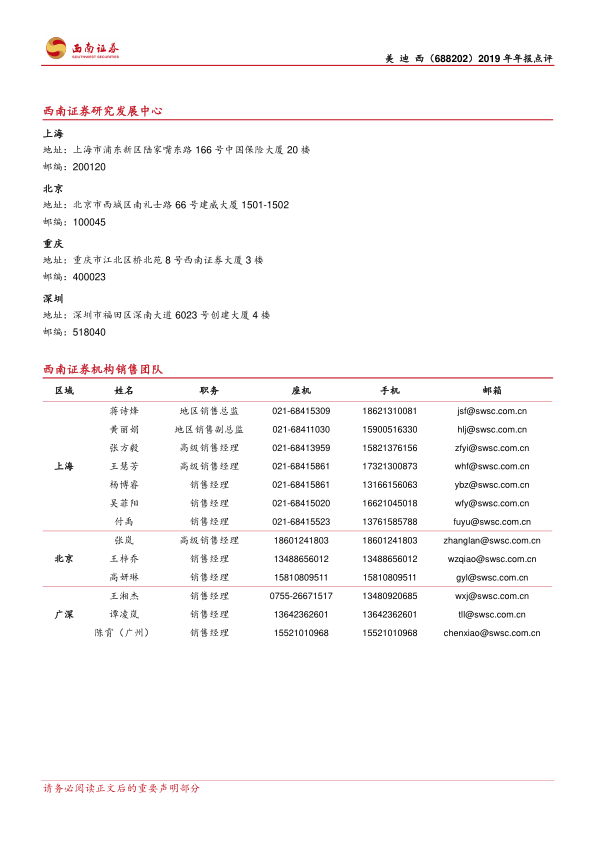 2019年,美迪西实现营业收入4.5亿元,同比增长38.3%;归母净利润6657万元,同比增长9.5%;扣非后归母净利润5841万元,同比增长10.3%。其中,2019年第四季度营业收入和扣非归母利润分别为1.4亿元和1474万元,同比变动45.5%和-0.7%,显示业绩增长持续加速,符合市场预期。