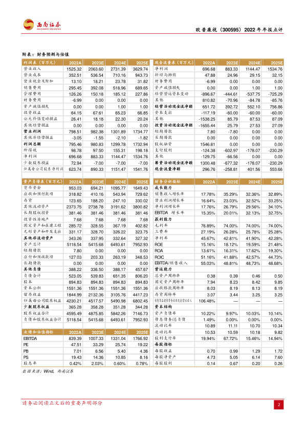 本报告对欧普康视2022年年报进行了全面分析,公司业绩符合预期,医疗及护理产品收入快速增长,角膜接触镜稳步放量,视光终端建设持续推进,在研管线丰富,为公司未来发展奠定坚实基础。维持“买入”评级,但需关注公司经营风险、疫情反复风险以及竞争格局加剧风险。