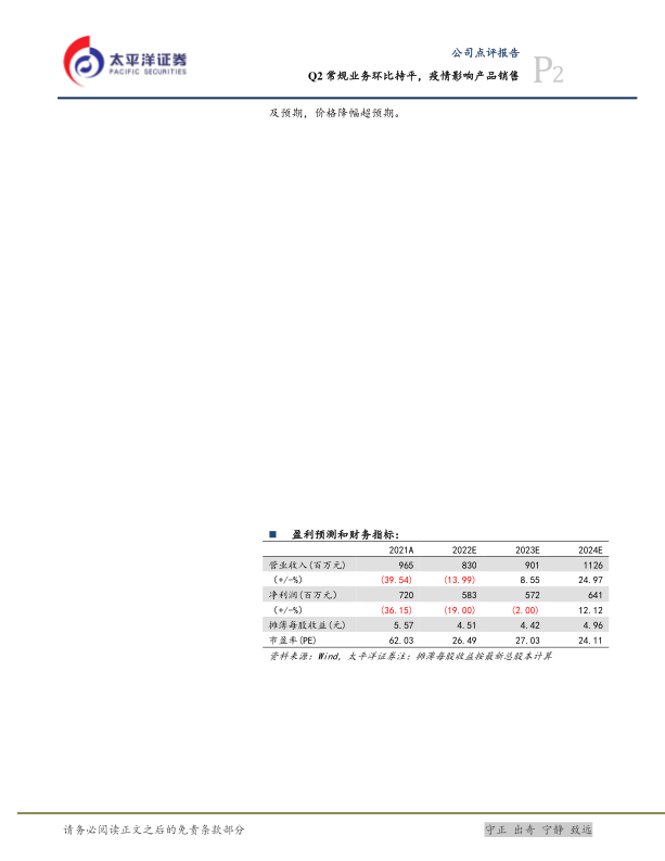 事件:公司发布2022年半年报,上半年实现营收2.99亿元(-52.84%)、归母净利润为1.92亿元(-56.58%)、扣非后归母净利润1.53亿元(-63.75%);其中Q2实现营收1.23亿元(-30.69%)、归母净利润为0.78亿元(-29.42%)、扣非后归母净利润0.59亿元(-40.49%)。整体业绩符合预期。