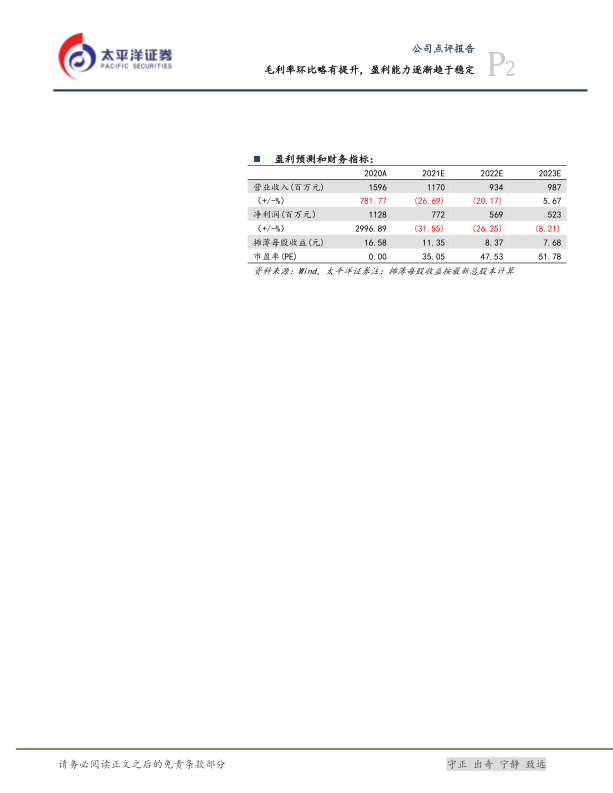 预计21-23年归母净利润为7.72/5.69/5.23亿元,对应当前PE为35/48/52倍,维持“增持”评级。