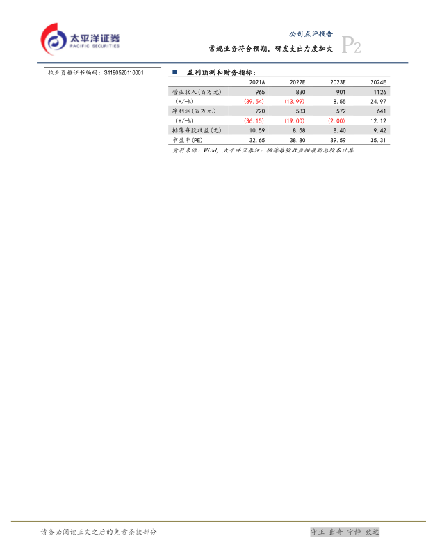 常规业务符合预期,研发支出力度加大