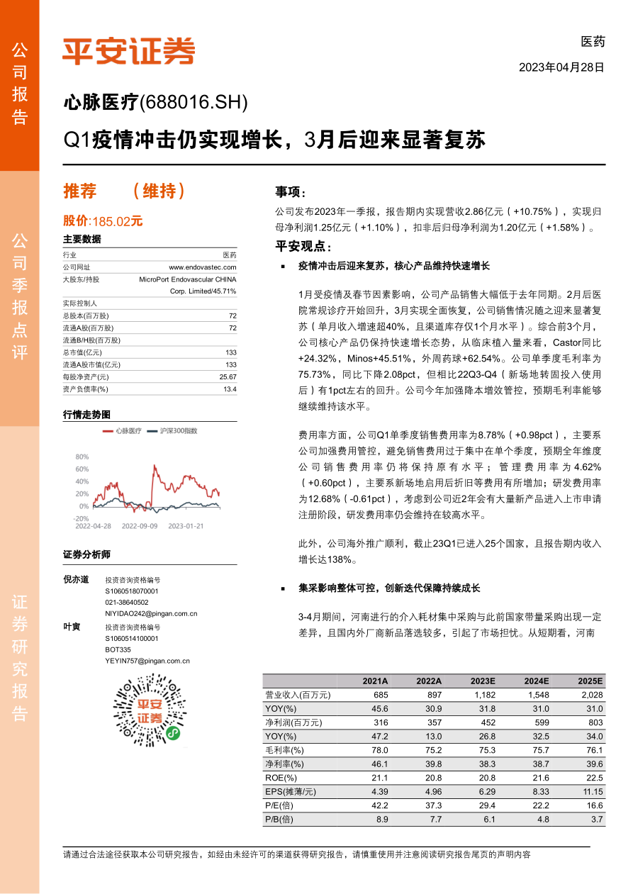 心脉医疗一季度业绩虽受疫情影响,但核心产品仍保持快速增长,3月份销售情况显著复苏,显示出公司强大的市场适应能力和恢复能力。