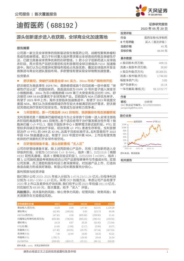 本报告对迪哲医药(688192)进行了首次覆盖,核心观点如下: