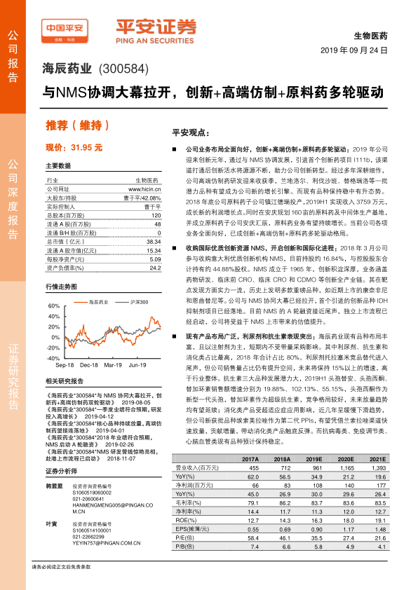 报告维持对海辰药业的“推荐”评级,但同时也提示了带量采购、研发进度和并购整合等风险因素。