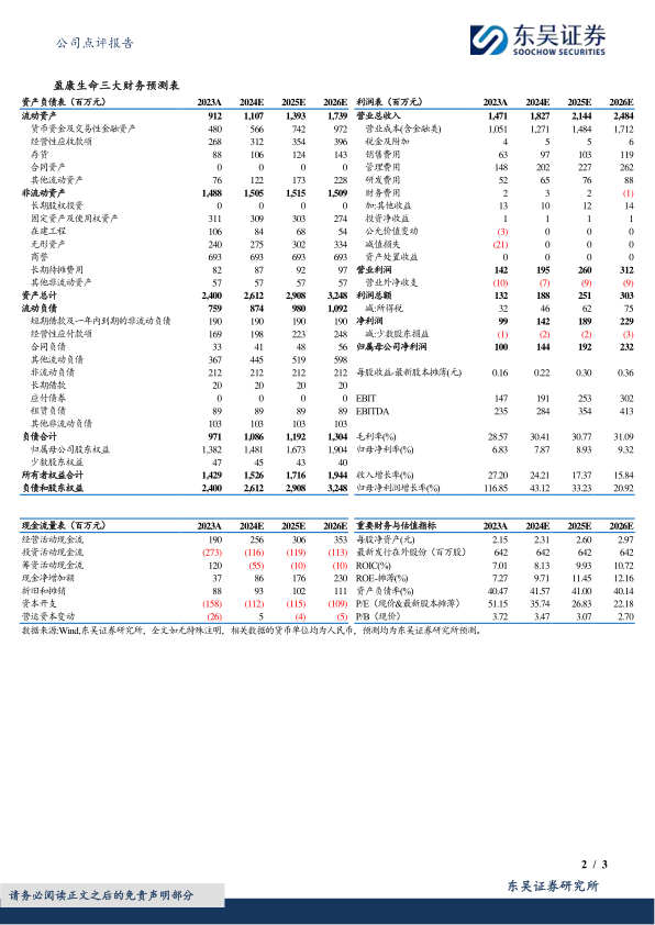 盈康生命在2023年实现了强劲的业绩反转,营业收入和归母净利润均实现显著增长,成功扭亏为盈。这主要得益于医疗服务板块的稳健发展和医疗器械板块通过并购实现的快速扩张。公司在提升医疗服务质量、精细化运营以及技术创新方面均取得了积极进展。尽管分析师对未来两年的盈利预测进行了调整,但基于其业务版图的持续扩张和预计的利润加速增长,公司仍被维持“买入”评级。投资者在关注公司增长潜力的同时,也需警惕报告中提及的运营和政策风险。