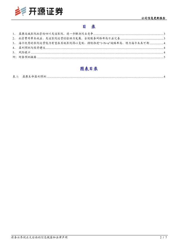 海尔优秀的医院运营能力有望在其他医院得以复制,借力海尔未来可期