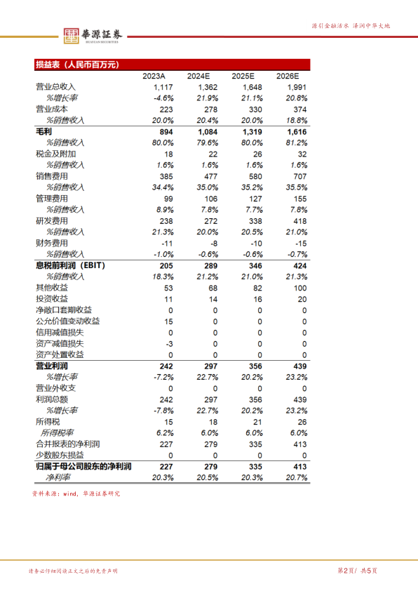 公司事件:公司发布2024年半年报,2024上半年实现营业收入6.7亿元,同比增长20.6%,实现归母净利润1.5亿元(同比增长11.4%);24Q2,实现营业收入3.6亿元,同比增长27.7%,实现归母净利润0.7亿元(同比增长1.3%),符合市场预期。