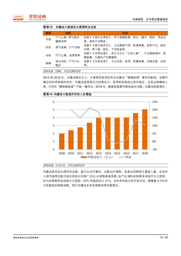 本报告分析了汉森制药的基本情况、核心产品、增长动力和未来发展前景。四磨汤口服液作为公司的主导产品,市场企稳并重回增长轨道,叠加政策利好和一致性评价的推进,公司有望迎来新的增长点。同时,大股东旗下的南岳生物也为公司未来的发展提供了想象空间。