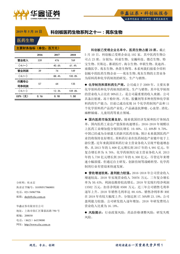 本报告对科创板已受理的医药生物企业——苑东生物进行了深入分析,旨在评估其投资价值和潜在风险。