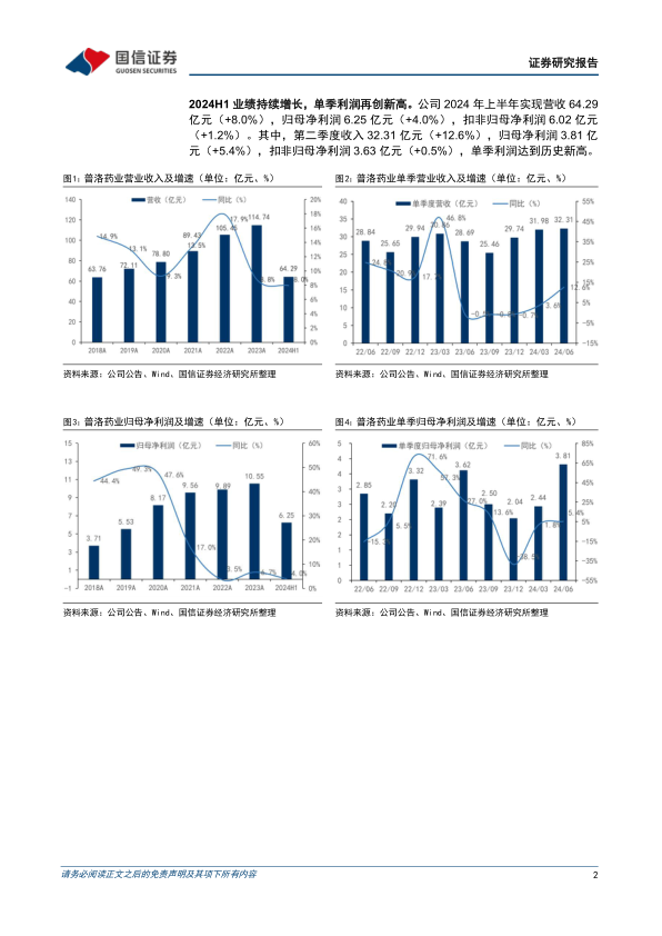 普洛药业在2024年上半年展现出稳健的经营业绩,尤其第二季度利润创历史新高,制剂业务以其显著的营收和毛利率增长成为核心亮点。公司通过有效的费用控制保持了整体盈利水平的稳定。在研发方面,CDMO和API项目数量持续增长,推动公司向原料药制剂一体化战略转型。同时,生产能力的同步提升,包括高端原料药车间、波士顿实验室和制剂生产线的建设与升级,为公司未来的可持续发展奠定了坚实基础。尽管面临原料药价格压力和地缘政治风险,导致盈利预测有所调整,但鉴于公司一体化布局的稳步推进,国信证券维持了“优于大市”的投资评级。