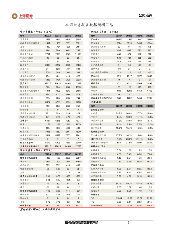 我们预计公司2023-2025年实现归母净利润12.02/14.54/17.65亿元,同比增长21.6%/20.9%/21.4%,当前股价对应PE为17/14/11倍,维持“买入”评级。