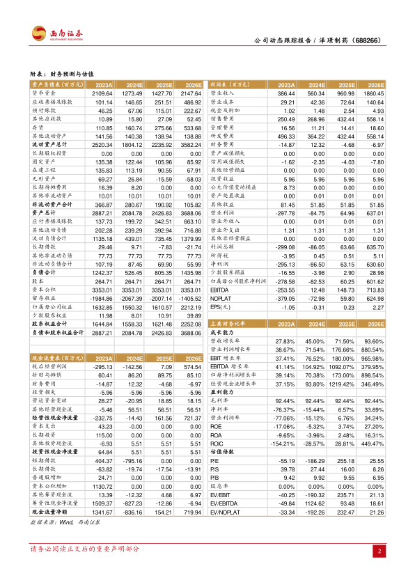 盈利预测:随着研发和商业化的稳步推进,公司业绩增长动力充足,我们预计公司2024-2026年营业收入分别为5.6、9.6和18.6亿元。