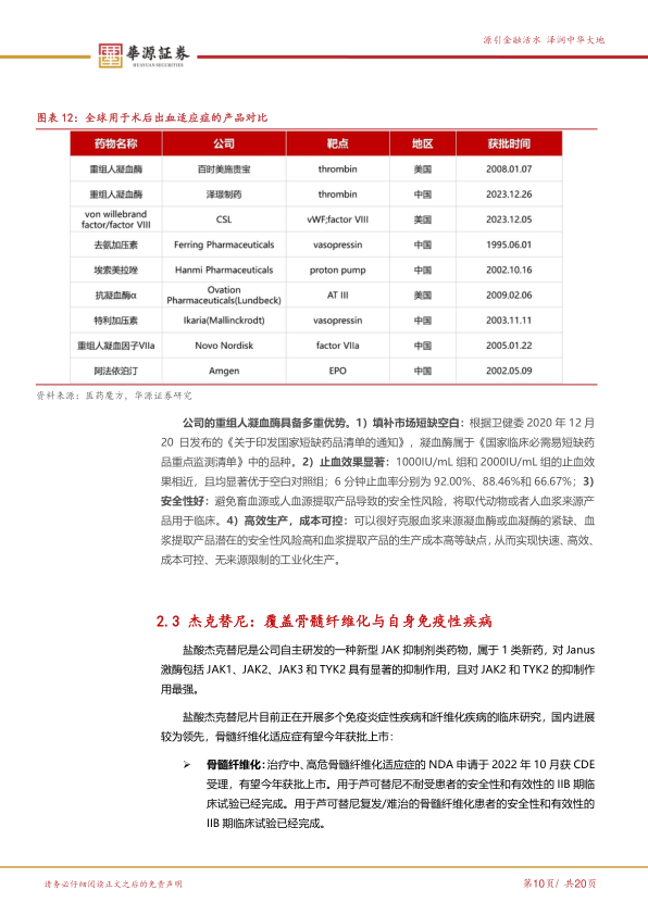 盐酸杰克替尼是公司自主研发的新型JAK抑制剂类1类新药,对JAK1、JAK2、JAK3和TYK2具有显著抑制作用,其中对JAK2和TYK2作用最强。