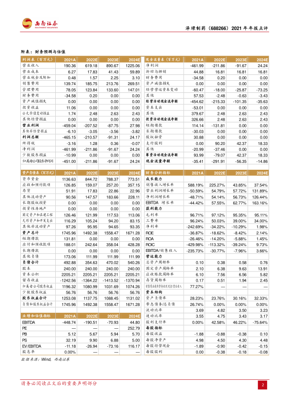 本报告对泽璟制药(688266)2021年年报进行点评,核心观点如下:
